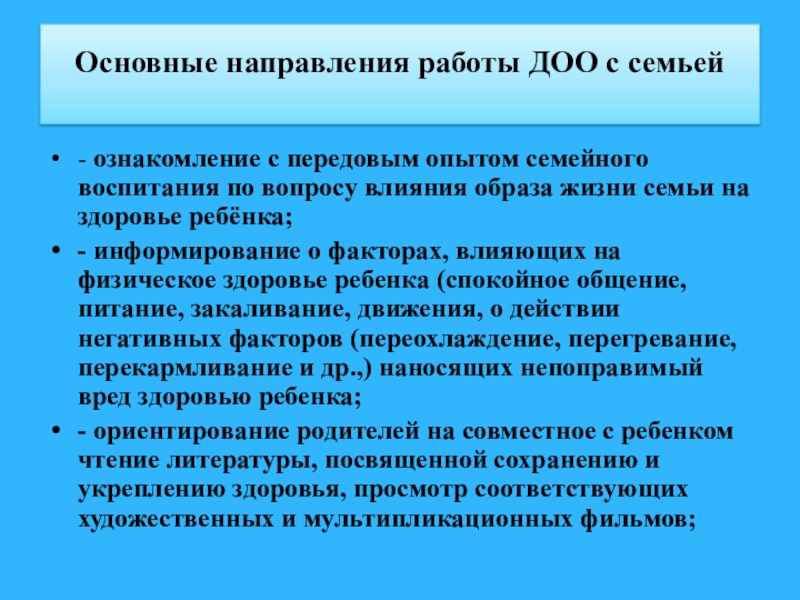 воспитания по вопросу влияния образа жизни семьи на здоровье ребёнка;
