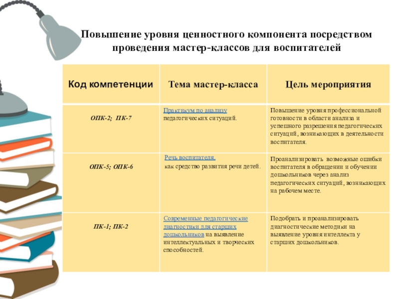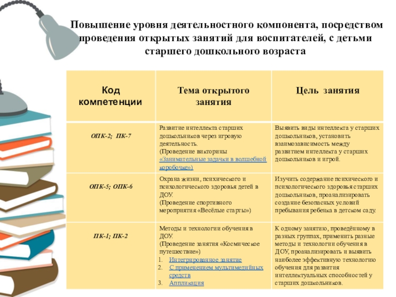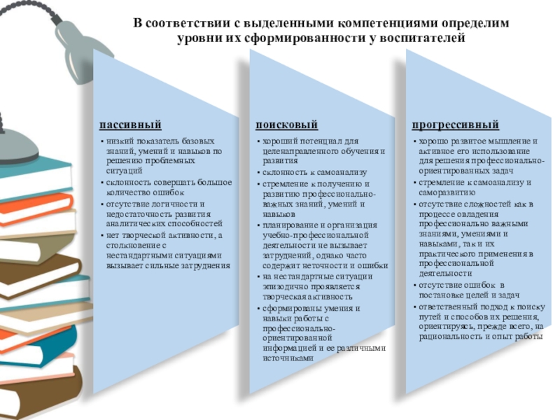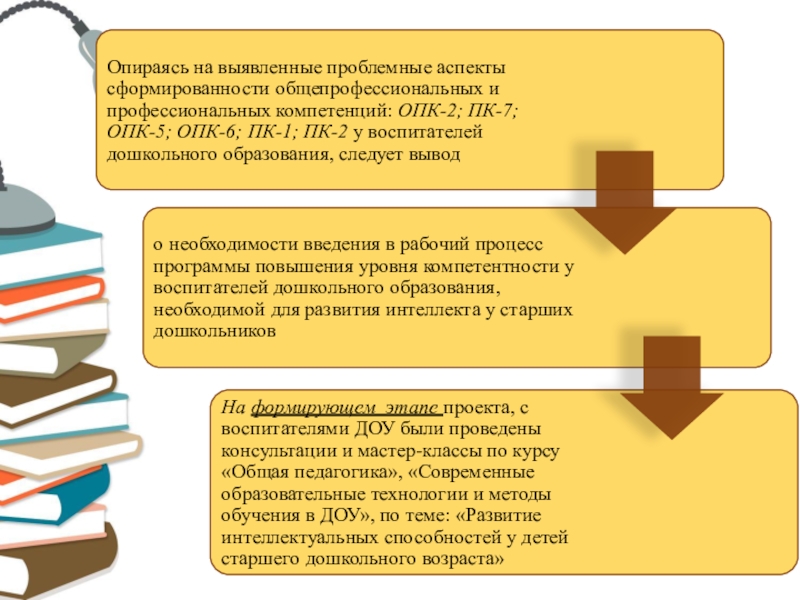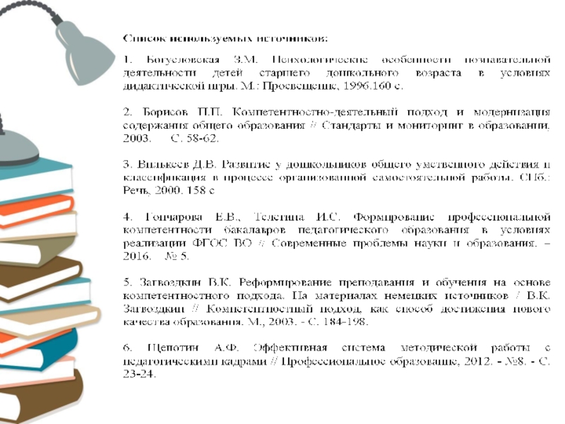 Вопросы профессиональной готовности воспитателей дошкольного учреждения к работе по различным направлениям воспитания, обучения и интеллектуальному развитию детей изучались в работах И. Зорило, У.Ш. Ибрагимова, З.И. Нестеровой и Л.О. Романовой, В.Н. Карташовой, Н.Л. Московской и Т.Н. Тарановой.