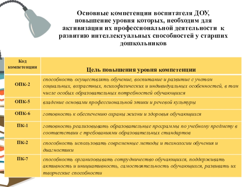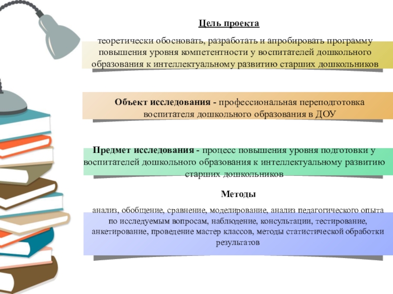 теоретически обосновать, разработать и апробировать программу повышения уровня компетентности у воспитателей дошкольного образования к интеллектуальному развитию старших дошкольников