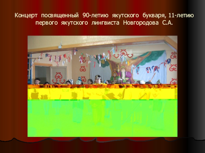 Слайд 4Концерт посвященный 90-летию якутского букваря, 11-летию первого якутского лингвиста Новгородова С.А.