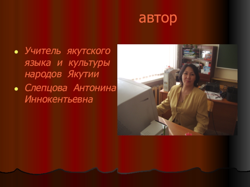 авторУчитель якутского языка и культуры народов ЯкутииСлепцова Антонина Иннокентьевна