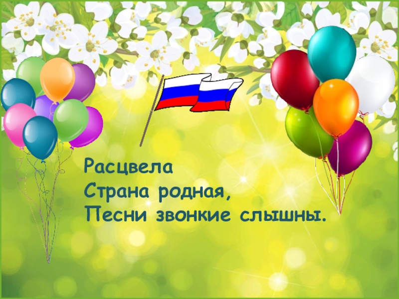 Слайд 2Расцвела Страна родная, Песни звонкие слышны.