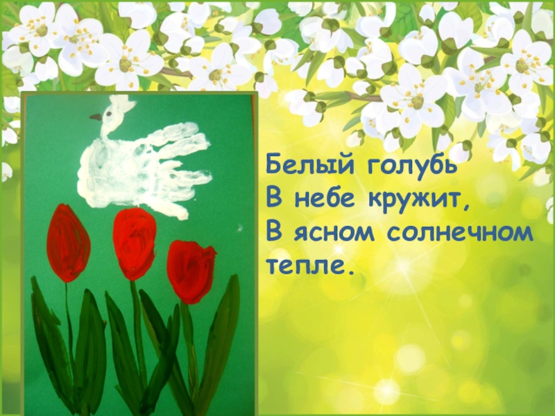 Слайд 6Белый голубь В небе кружит, В ясном солнечном тепле.