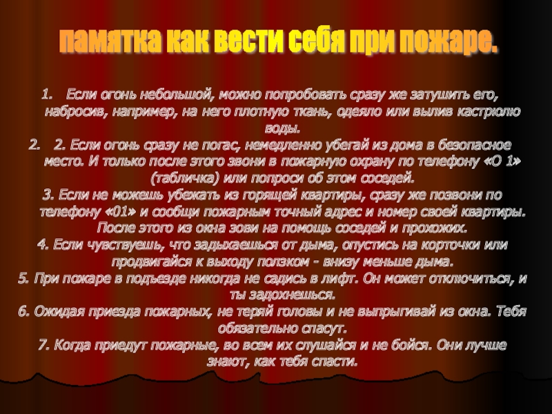 памятка как вести себя при пожаре.
