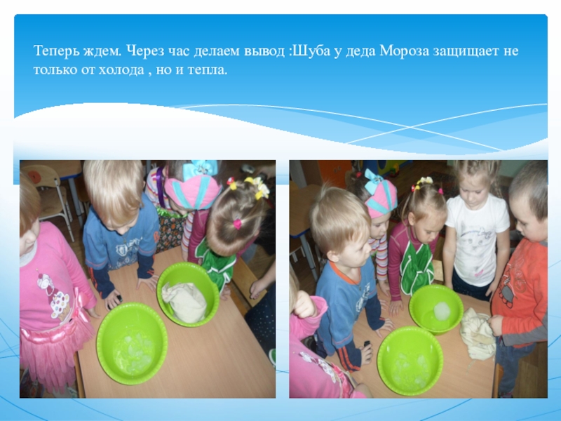 Слайд 12Теперь ждем. Через час делаем вывод :Шуба у деда Мороза защищает