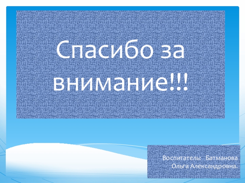 Спасибо за внимание!!!Воспитатель:  Батманова  Ольга Александровна.