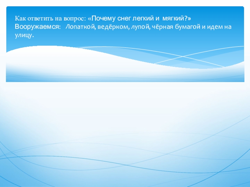 Слайд 13Как ответить на вопрос: «Почему снег легкий и мягкий?» Вооружаемся:
