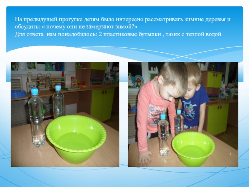 « почему они не замерзают зимой?» Для ответа нам понадобилось: 2 пластиковые бутылки , тазик с теплой водой