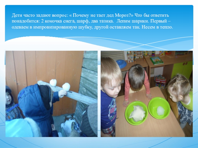 Слайд 11Дети часто задают вопрос: « Почему не тает дед Мороз?» Что