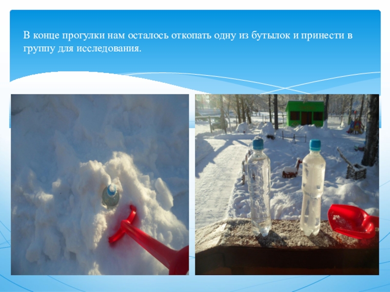 Слайд 9В конце прогулки нам осталось откопать одну из бутылок и принести