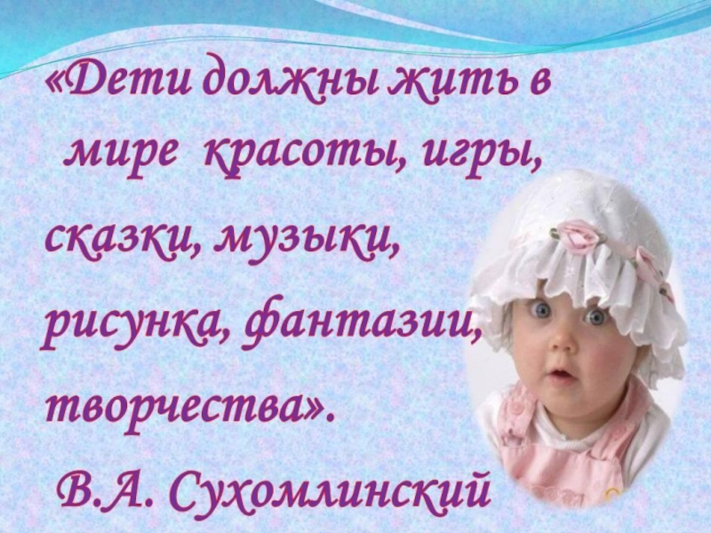 Слайд 17 Вхождение искусства в духовный мир ребенка начинается с