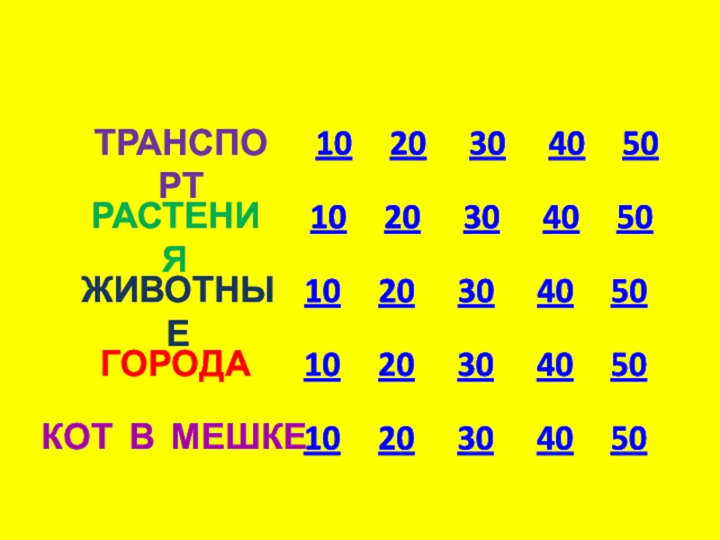 РАСТЕНИЯЖИВОТНЫЕГородаКОТ В МЕШКЕ10203040501020304050102030405010203040501020304050транспорт