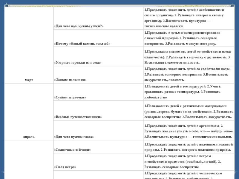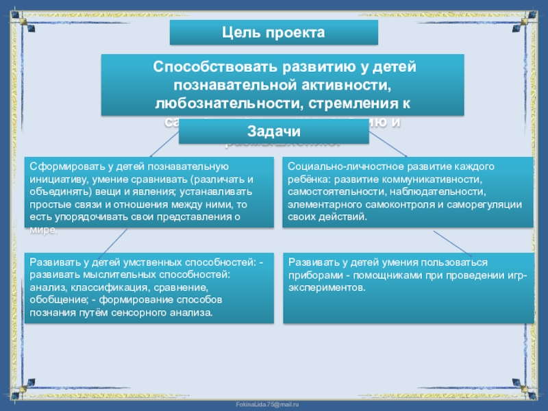 Развивать у детей умственных способностей: - развивать мыслительных способностей: анализ, классификация, сравнение, обобщение; - формирование способов познания путём сенсорного анализа.