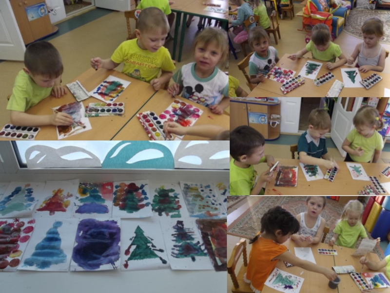 • выставки детского творчества на темы: « Осенний пейзаж », коллективная работа «Осенний парк», «Елочке маленькой холодно зимой » и др.