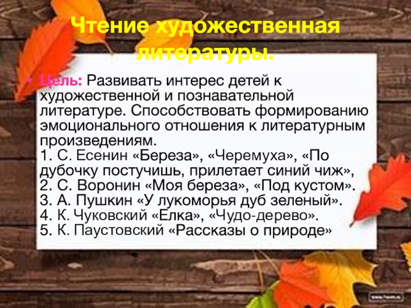 Цель: Развивать интерес детей к художественной и познавательной литературе. Способствовать