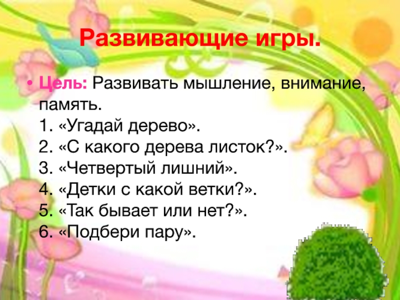 Цель: Расширять словарь детей по теме; развивать диалогическую и