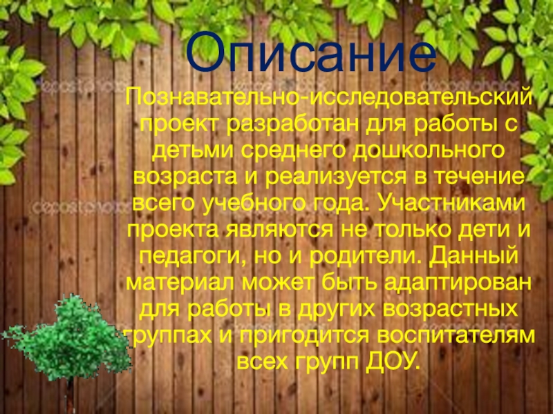 Слайд 1Познавательно-исследовательский проект «Деревья - наши друзья».