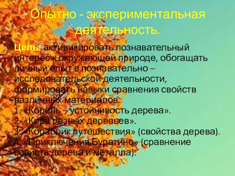 Цель: активизировать познавательный интерес к окружающей природе, обогащать личный