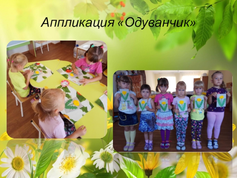 Продуктивная деятельность   Раскрашивание растений			Аппликация коллективная «Пижма и ромашка» 			 «Ромашковое