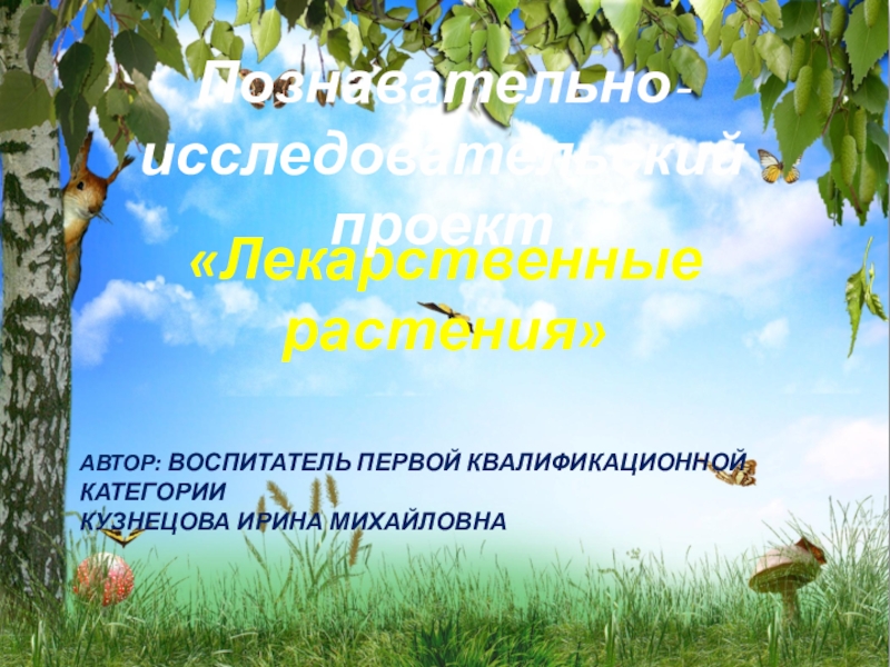 автор: воспитатель первой квалификационной категории Кузнецова Ирина Михайловна «Лекарственные растения»Познавательно- исследовательский проект