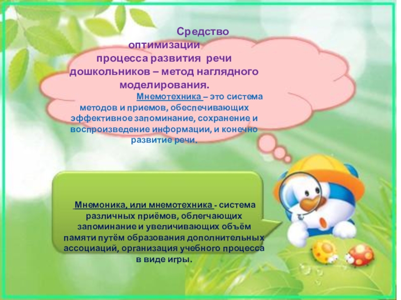 Мнемотехника – это система методов и приемов, обеспечивающих эффективное запоминание, сохранение и воспроизведение информации, и конечно развитие речи.