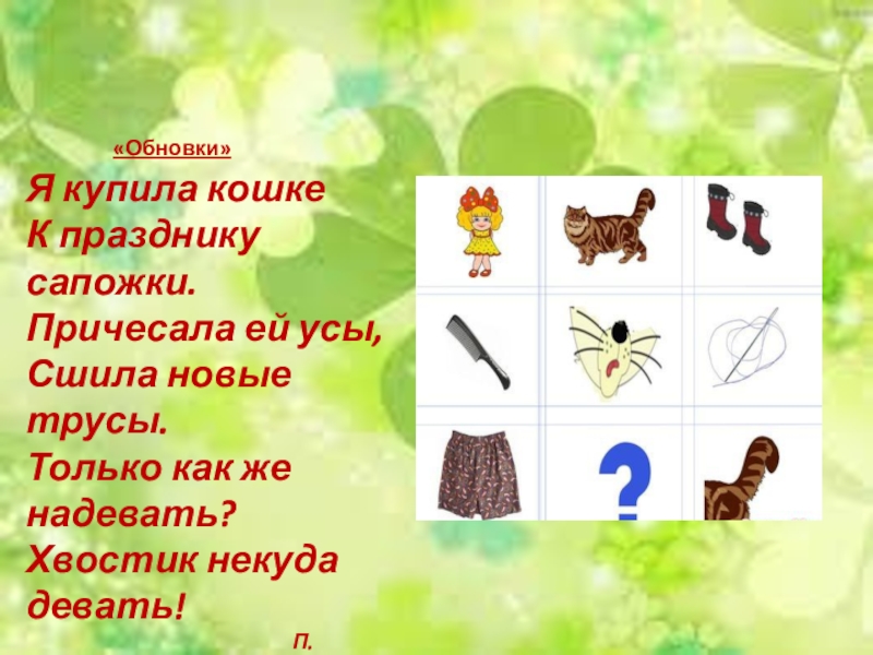 детей, обогащать их активный словарь, закреплять навыки словообразования, формировать и совершенствовать умение использовать в речи различные конструкции предложений, описывать предметы. В ходе использования приема наглядного моделирования дети знакомятся с графическим способом предоставления информации - моделью. На начальных этапах моей работы внедрения моделей или символов предполагалось подкрепление их наглядным материалом (картинками, предметами, стилизованными изображениями реальных предметов или их частей, так называемыми «пиктограммами»), обеспечивающим опору на наглядно-образное мышление. Это соответствует начальным этапам обучения мыслительным операциям – анализу, классификации.
