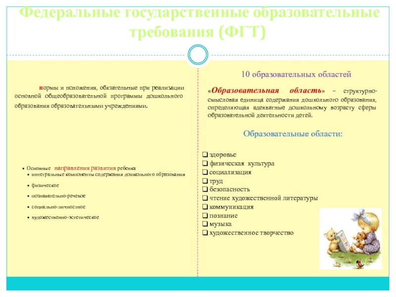 «Образовательная область» – структурно-смысловая единица содержания дошкольного образования, определяющая адекватные дошкольному возрасту сферы образовательной деятельности детей.