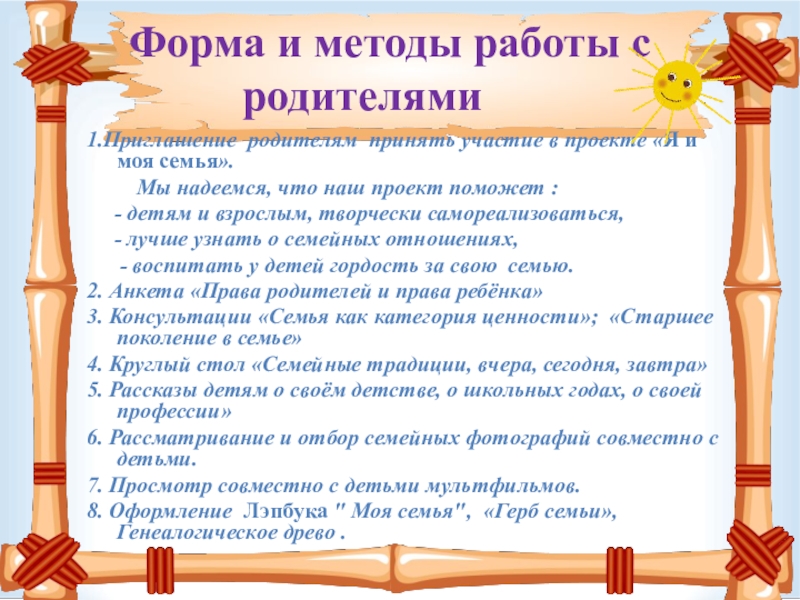 Способствовать активному вовлечению родителей в совместную деятельность с ребенком в условиях семьи и детского сада.