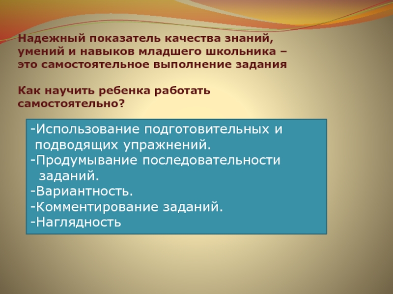 Слайд 17Надежный показатель качества знаний, умений и навыков младшего школьника – это