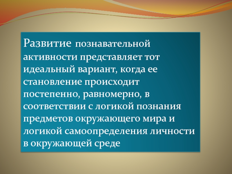 Слайд 13Развитие познавательной активности представляет тот идеальный вариант, когда ее становление происходит