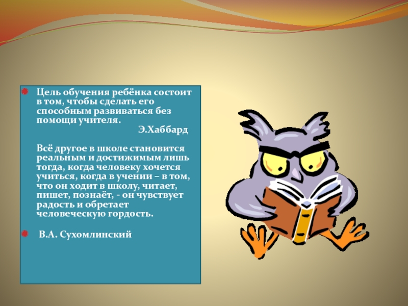 Слайд 2Цель обучения ребёнка состоит в том, чтобы сделать его способным развиваться