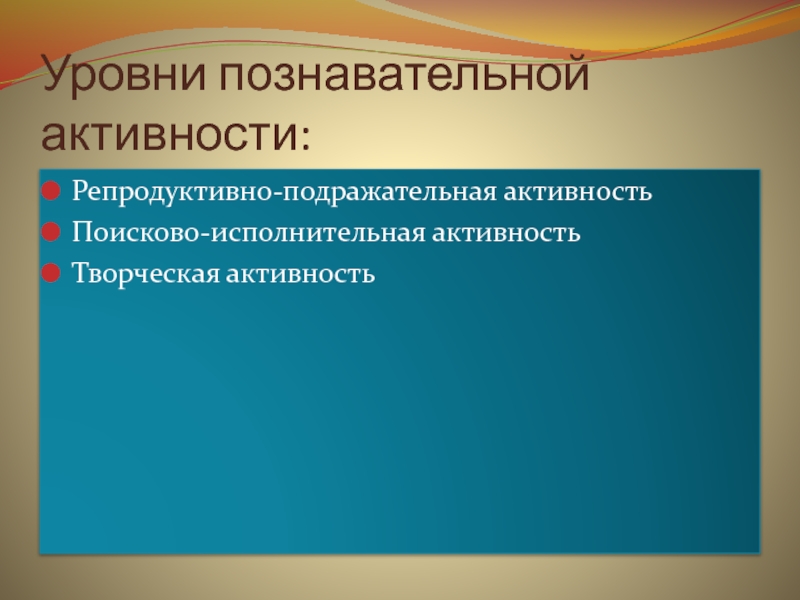 Слайд 11Уровни познавательной активности:
