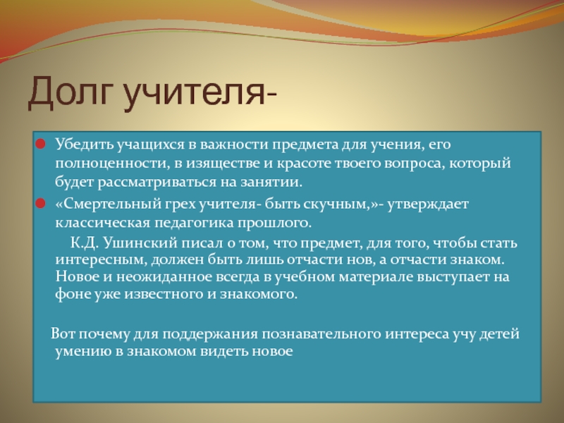 Слайд 18Долг учителя-