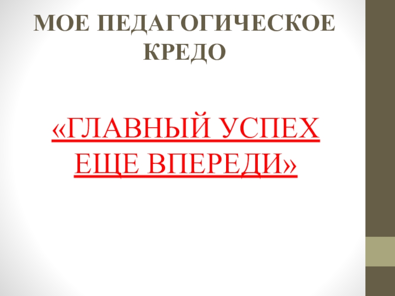 МОЕ ПЕДАГОГИЧЕСКОЕ КРЕДО«ГЛАВНЫЙ УСПЕХ ЕЩЕ ВПЕРЕДИ»