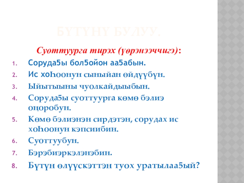 Слайд 24Бүтүнү БУЛУУ.