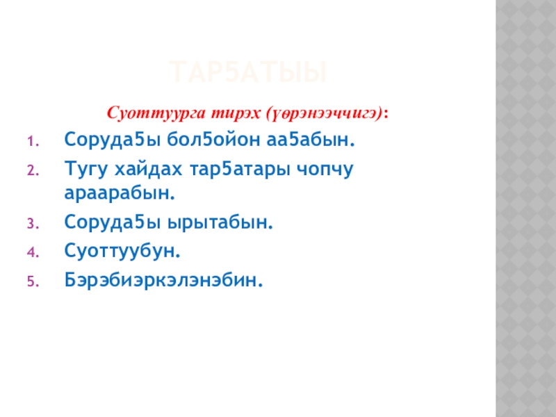 Слайд 18ТАР5АТЫЫ