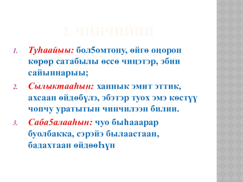 ирдэнэрин чопчулуубун: хас биирдии тылы бол5ойон аа5абын.