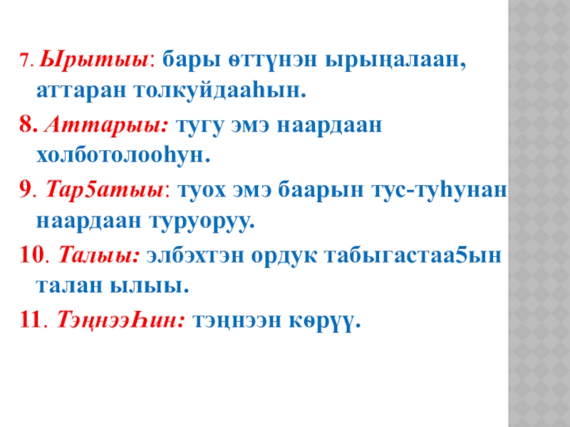 9. Тар5атыы: туох эмэ баарын тус-туhунан наардаан туруоруу.