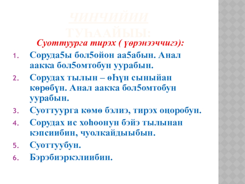 ис хоhоонун кэпсиибин, ыйытыы чуолкайдыыбын..