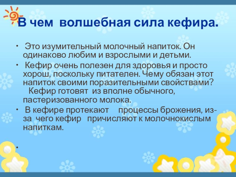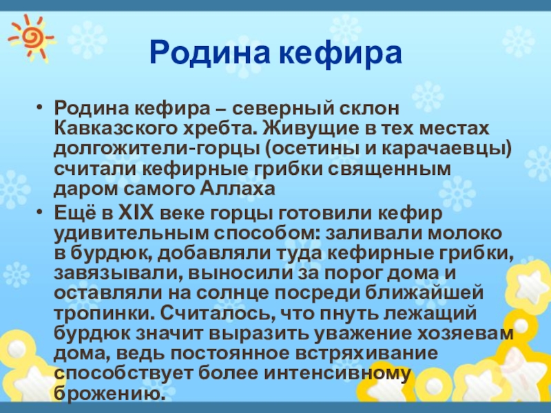 Возьмите 1л пастеризованного молока, налейте его в алюминиевую кастрюлю и нагревайте на медленном огне. Как только пена начнет подниматься, снимите кастрюлю с огня и поставьте ее в прохладное место. После того как молоко остынет, его надо перелить в стеклянную тару. Положите туда 6-8 ч.л. кефира и плотно закройте крышкой и храните в теплом месте. Через сутки чудесный напиток готов!