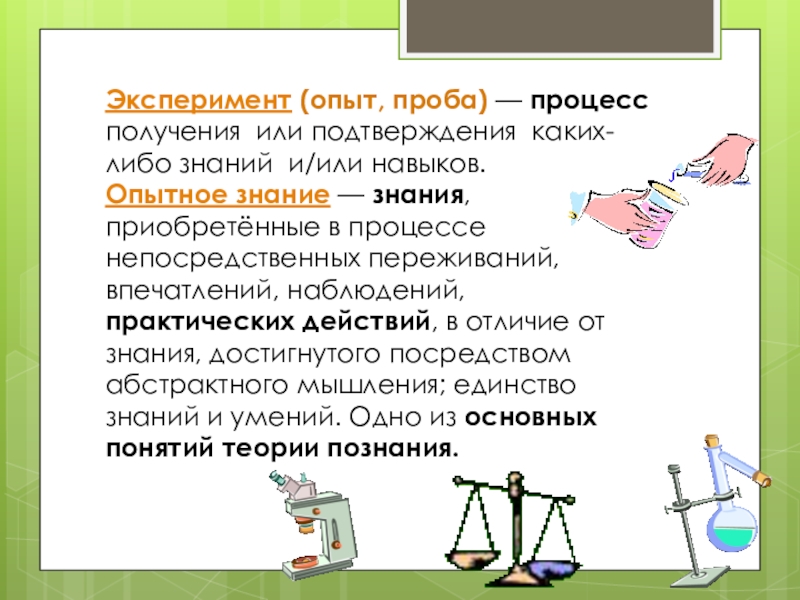 проверка предположения при помощи опыта;