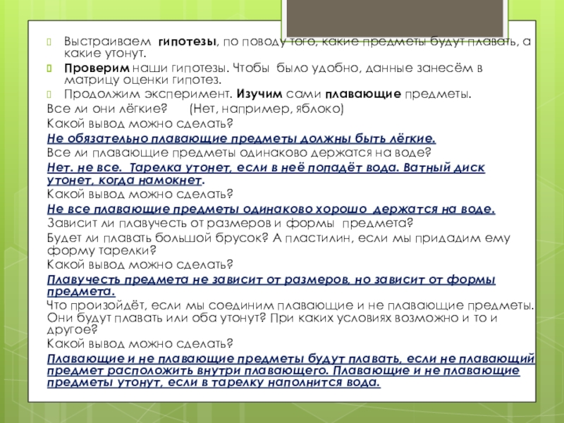 объяснение результатов опыта.