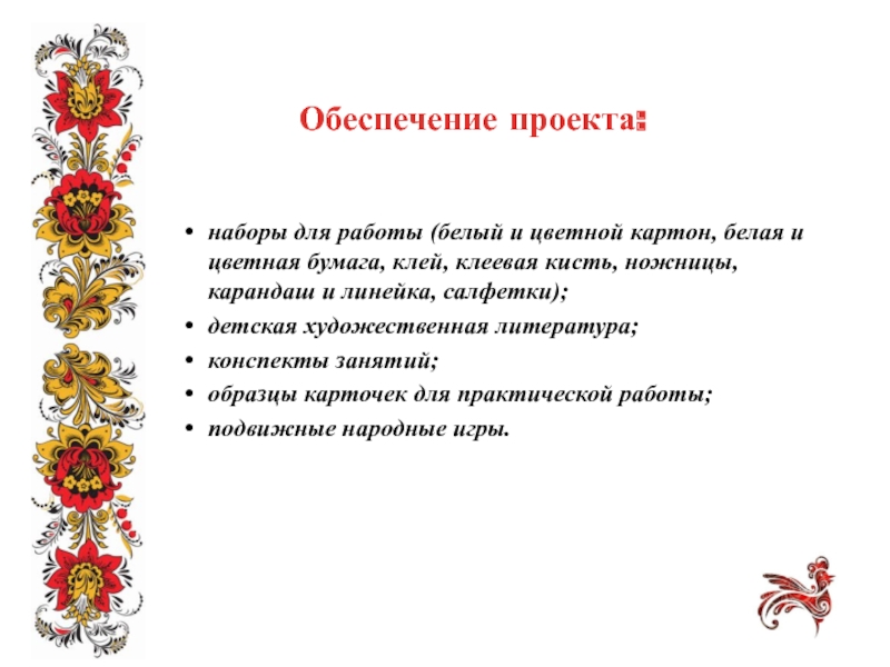 Слайд 5Обеспечение проекта: