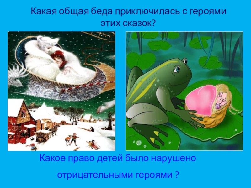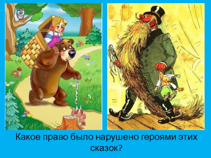 Слайд 27Какое право было нарушено героями этих сказок?
