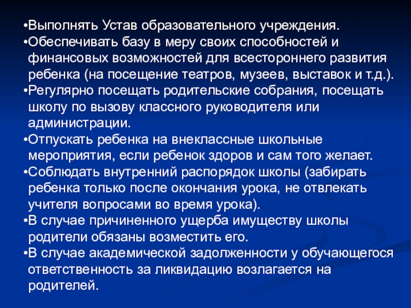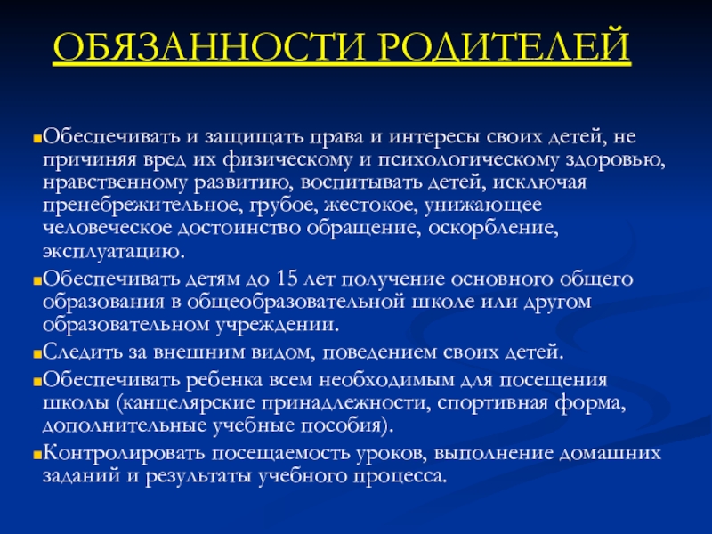 Слайд 18ОБЯЗАННОСТИ РОДИТЕЛЕЙ