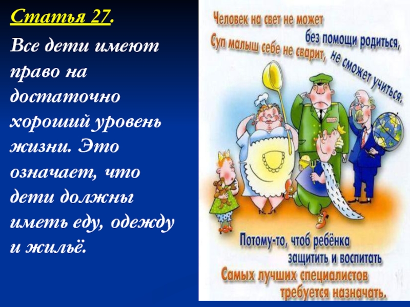 достаточно хороший уровень жизни. Это означает, что дети должны иметь еду, одежду и жильё.