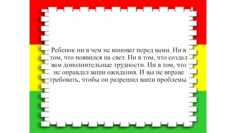 Слайд 5Ребенок ни в чем не виноват перед вами. Ни в том,
