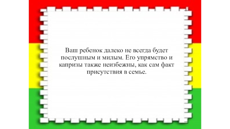 Слайд 7Ваш ребенок далеко не всегда будет послушным и милым. Его упрямство