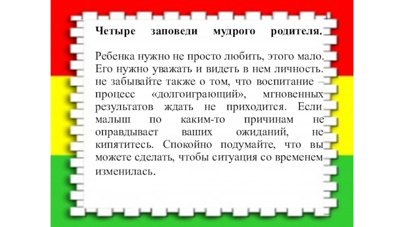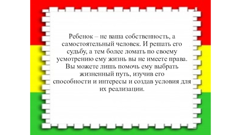 Слайд 6Ребенок – не ваша собственность, а самостоятельный человек. И решать его