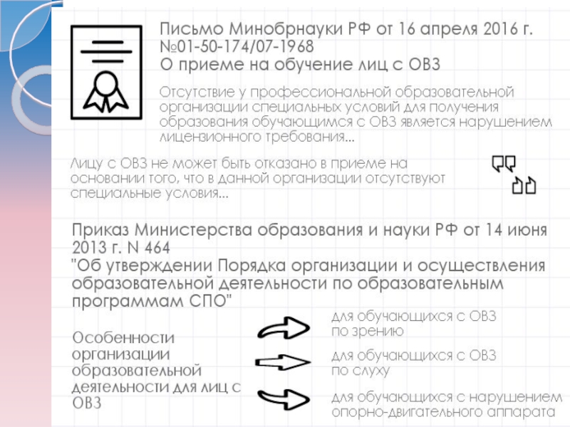 Усилия Минобрнауки России сосредоточены на том, чтобы в рамках модернизации российского образования создать образовательную среду, обеспечивающую доступность качественного образования для всех лиц с ограниченными возможностями здоровья и инвалидов с учетом особенностей их психофизического развития и состояния здоровья.